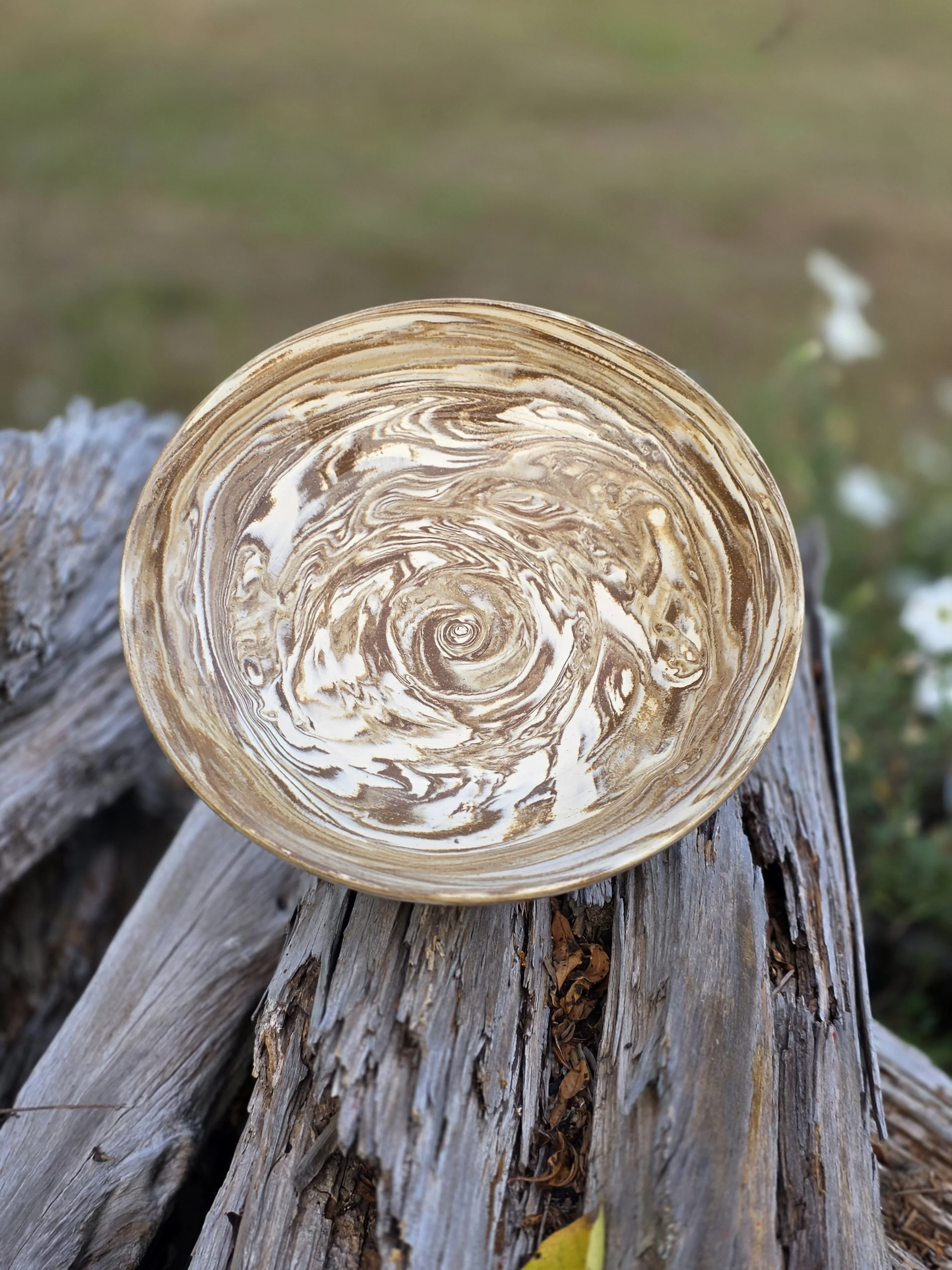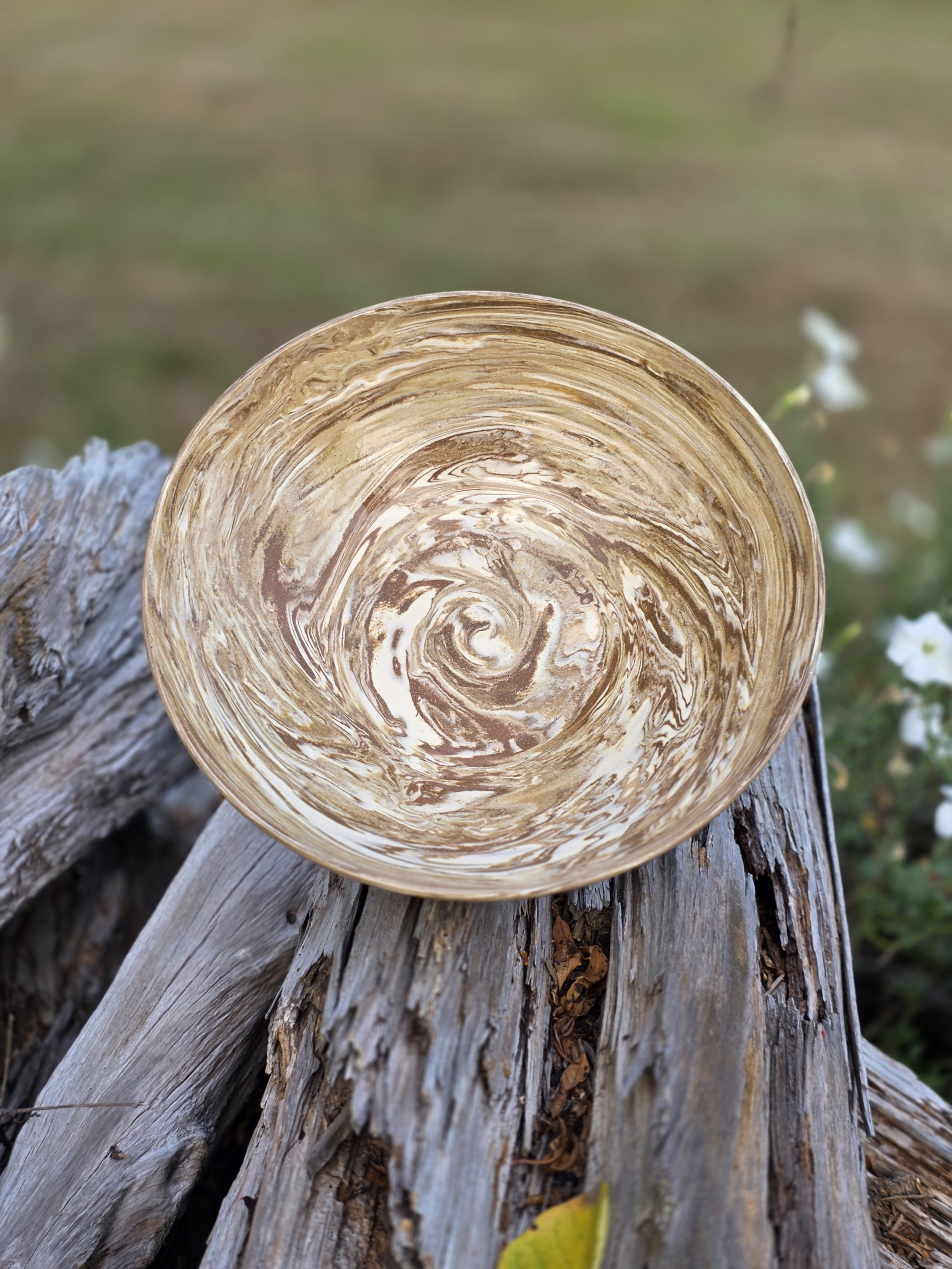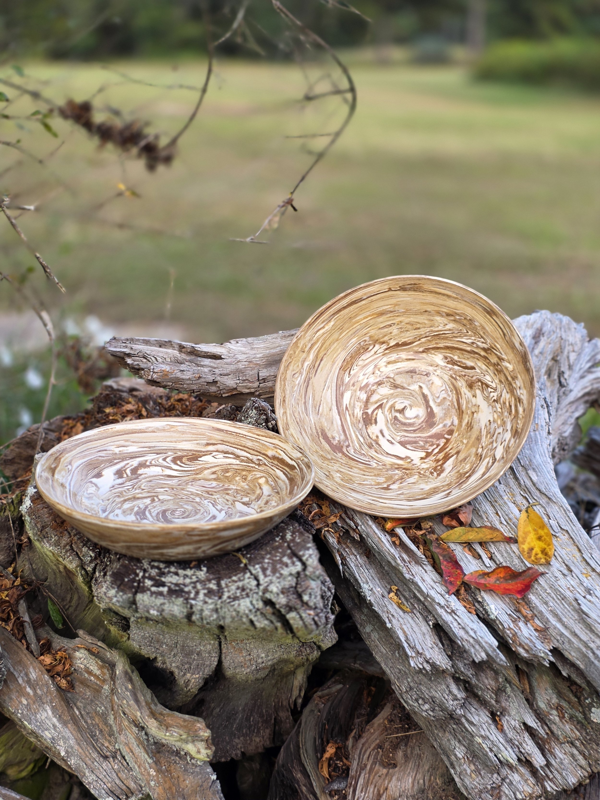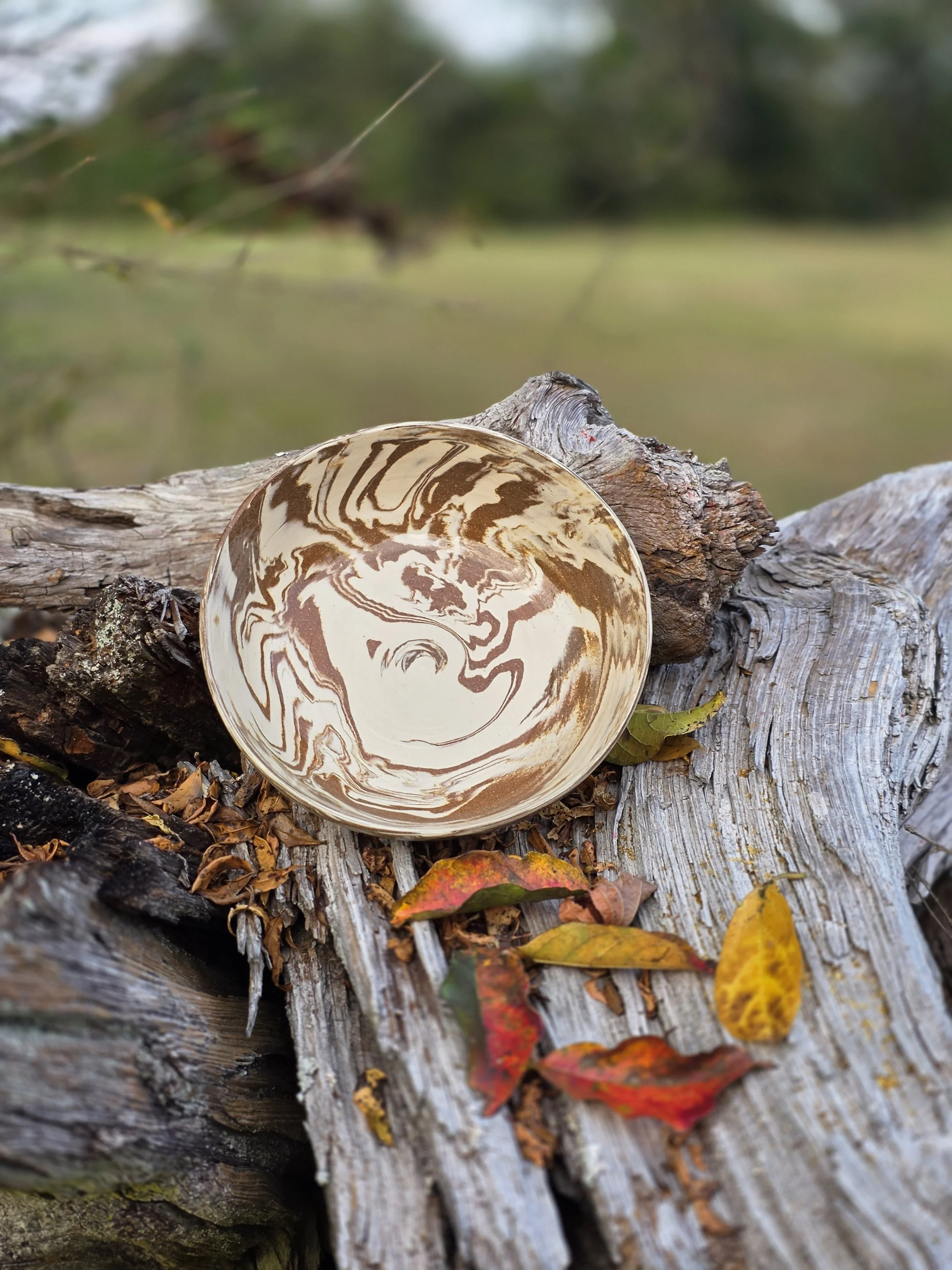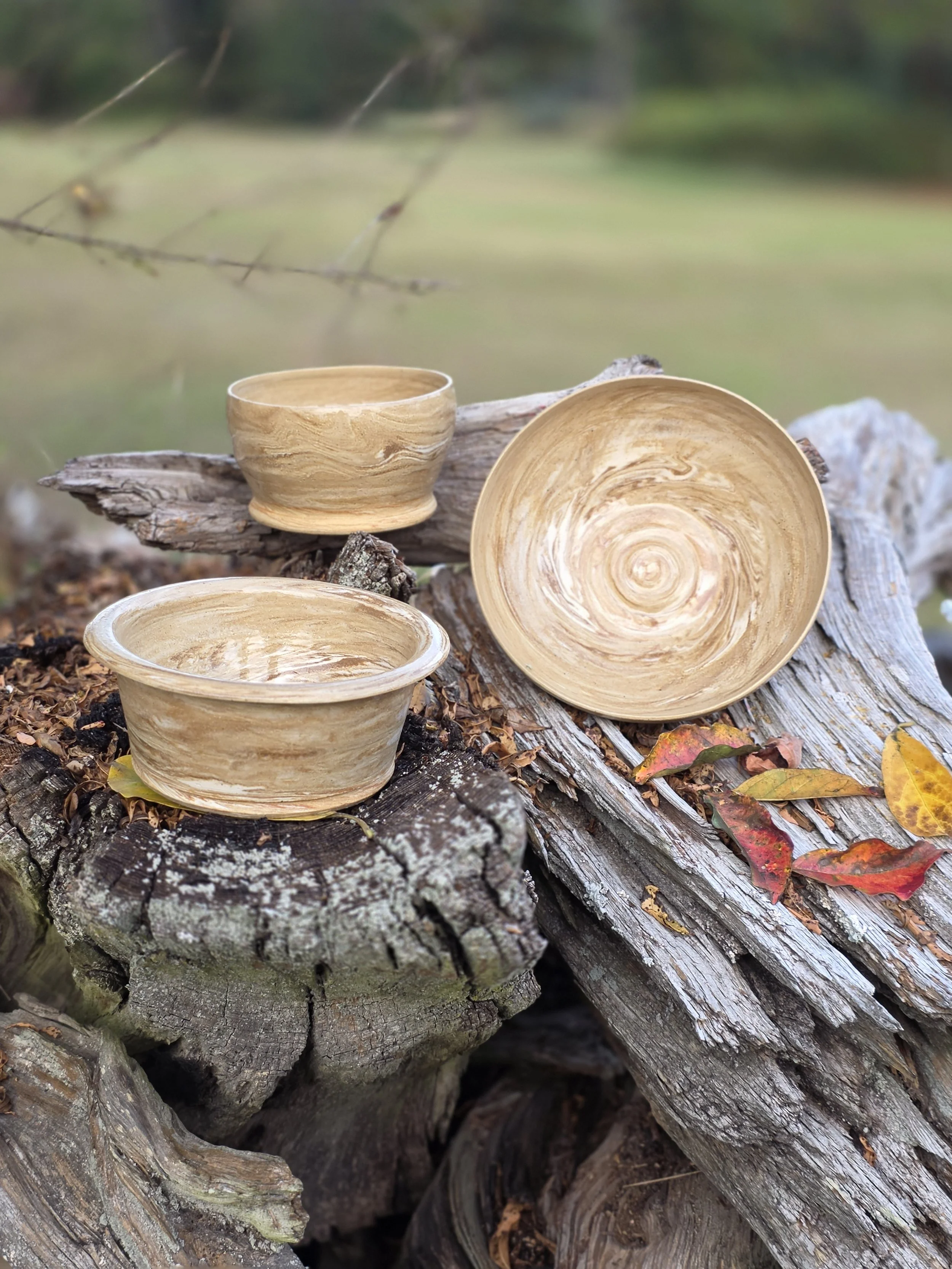 The pottery pieces in this collection are all made from two types of clay. The clays are different in color, obviously, but there are other differences in their textures and temperaments as well. As the potter blends the clays, they retain their identities, but they are mixed and melded together to form a new entity. The heat of the kiln melds them on an even stronger level. Together they form something more beautiful and stronger than they could ever be alone. You can no longer separate the clays without destroying the vessel.